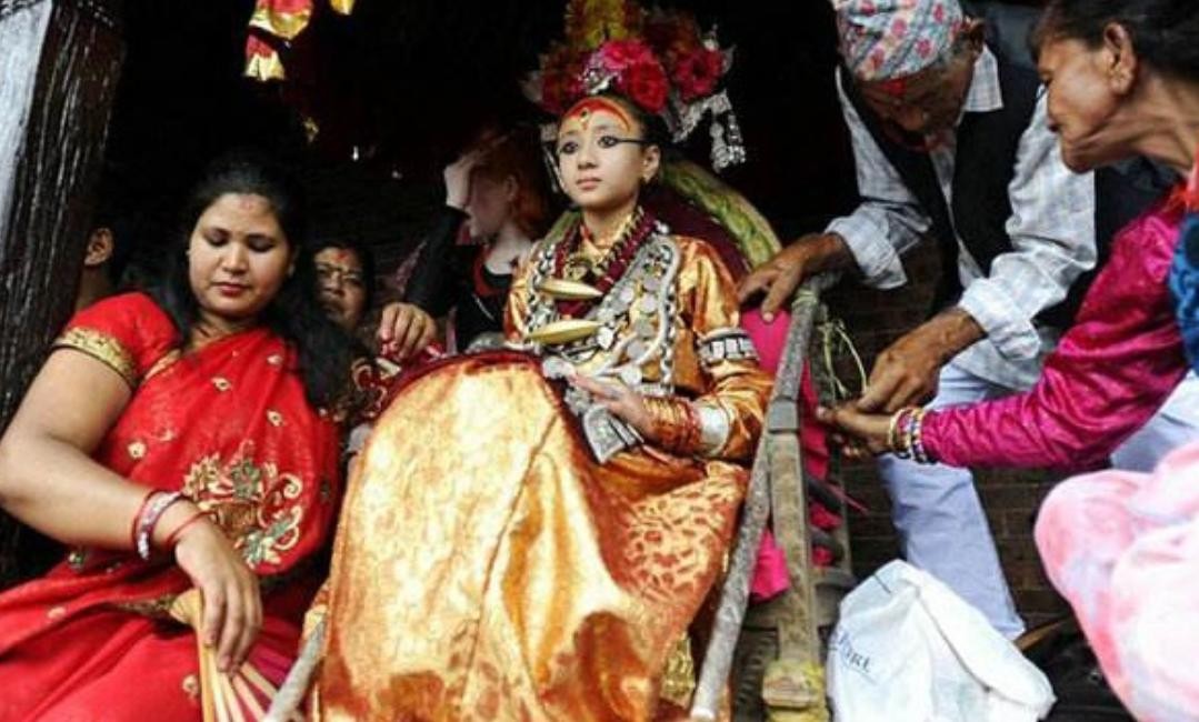 说到尼泊尔这个国家,想必大家也都是比较熟悉的,它是一个宗教国家,国内都有着各种寺庙,当地都笼罩一种宗教气氛。在尼泊尔,它有一种特殊的宗教习俗,就是会供奉一位三四岁的女孩子为“活女神”,在她在位期间,她们言行举止都有严格的要求,身体还不可以出现任何伤痕,每次在活女神的生理期到来之前,他们就已经备选好了下一位活女神的人选。