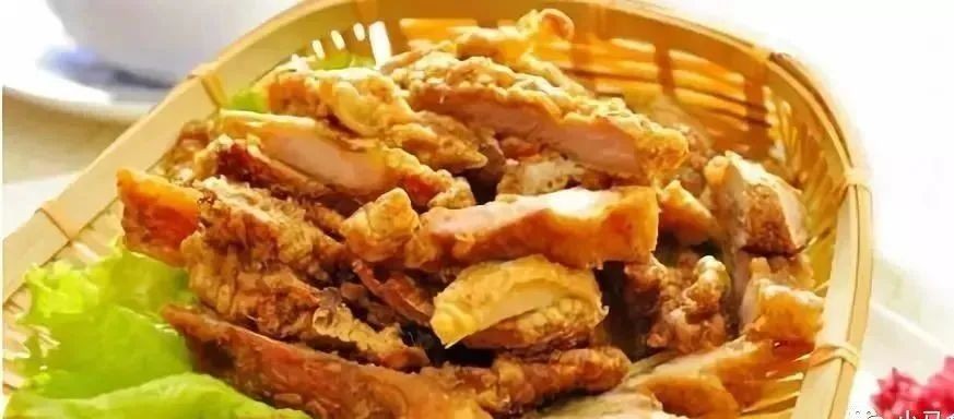 3.净锅入色拉油,油温升至五成热时改小火,将肉片逐片下入炸至金黄,捞出控油,放入花边纸垫好的盘中,带蘸料上桌即可。