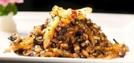 3. 锅置火上,加入适量油,以大火烧至七成热时,将剁碎的芽菜倒入锅中,和猪肉末熟透、芽菜入味时,调入味精用中小火翻炒均匀,即可出锅装盘。