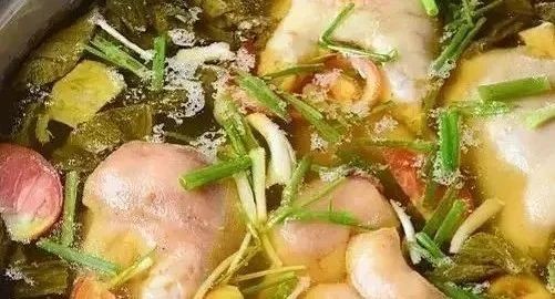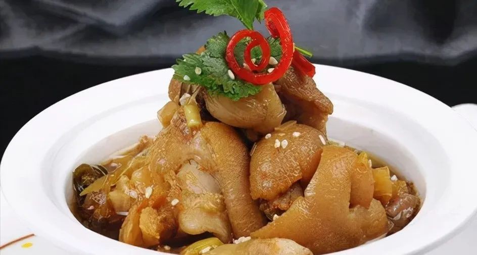 材料:猪脚、美人椒圈、小米椒圈、姜片、葱段、剁椒酱、蚝油、辣鲜露、鸡粉、味精、香油、色拉油各适量。