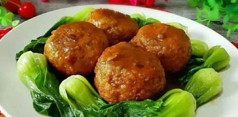 2.取砂锅装入菜心,放鸡汤调好味,上火烧开,把肉馅做成鸡蛋大的丸子,下入沙锅,缀上蟹粉,盖上白菜叶,炖3小时即可。