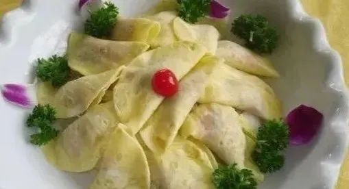 2.锅内放入色拉油,烧至三成热时,放入搅打后的鸡蛋煎成蛋饼,放入馅心,直接对折包成蛋饺。