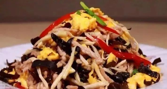 2. 炒锅加热,加入油,油烧热后,下入肉丝翻炒变色,放入葱、姜末煸炒一下,放入木耳、扁豆丝和焯熟的鸡蛋,加入高汤、味精、盐、烧沸后勾芡,出锅装盘即可。