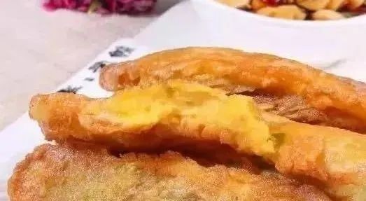 2. 藕片夹入猪肉末,拍上干淀粉,下入热油锅中炸熟装盘。