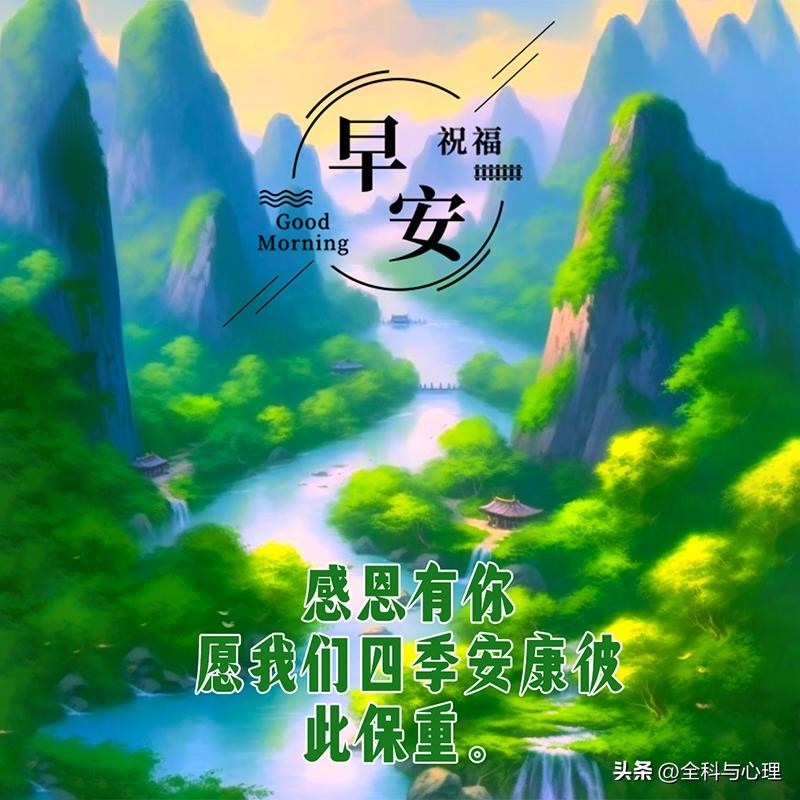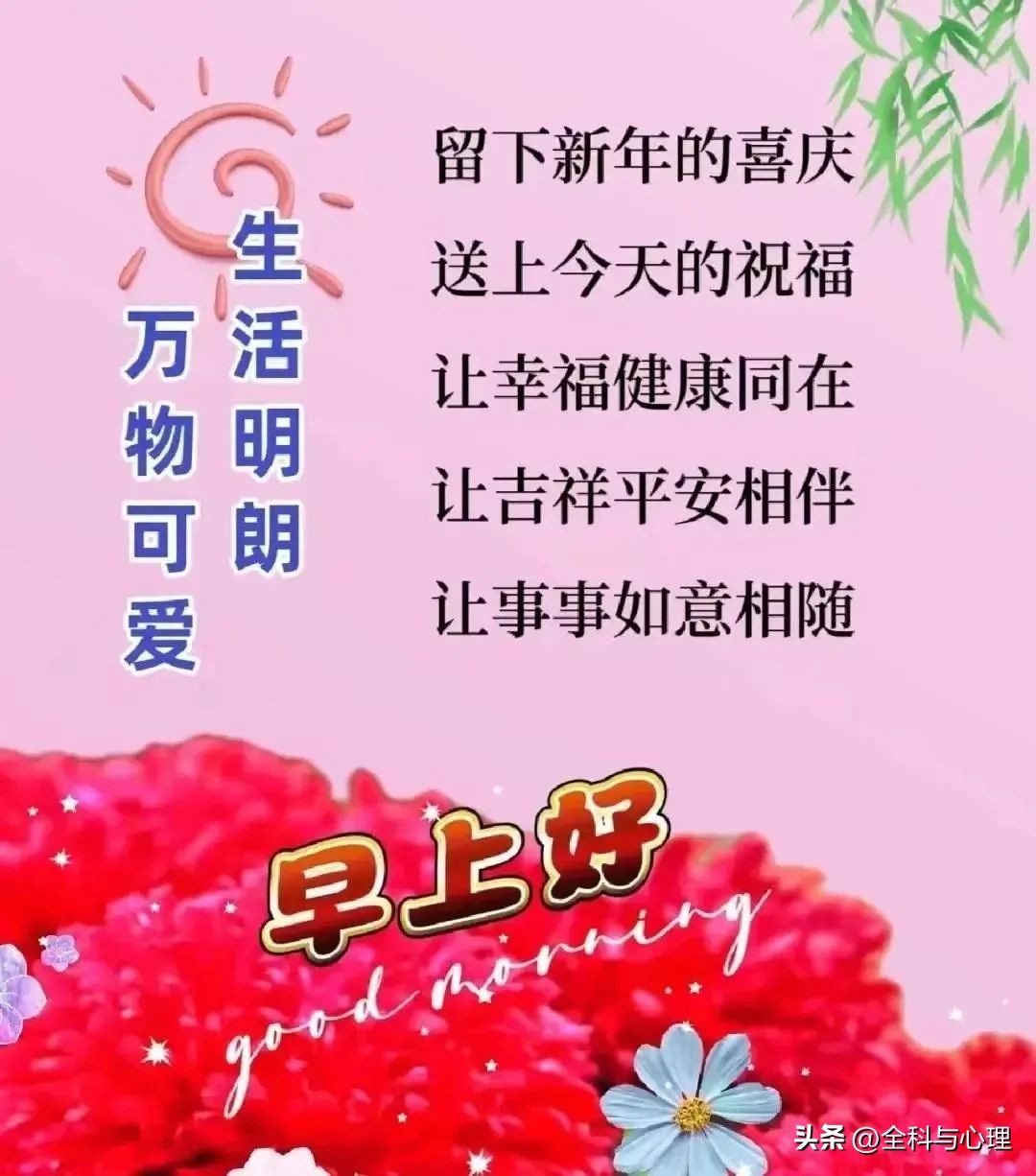 13、相遇是最美的缘分,相知是最珍贵的情谊。愿祝福如日日新,牵挂永存心间。健康与四季相伴,愿你每天都好!早上好!