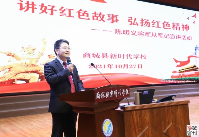 金秋十月,丹桂飘香,为铭记历史、追寻红色足迹、传承红色基因, 10月27日,河南商城县新时代学校开展了《讲好红色故事 弘扬红色文化》——陈明义将军从军记”为主题的宣讲活动,让红色教育走进课堂。