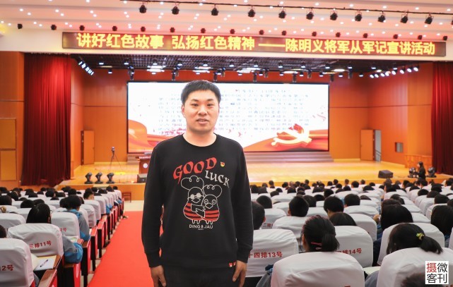 伏山乡里罗成村支部书记陈启鑫受学校邀请参加活动,现场为师生们介绍叔父陈明义将军传奇的一生。