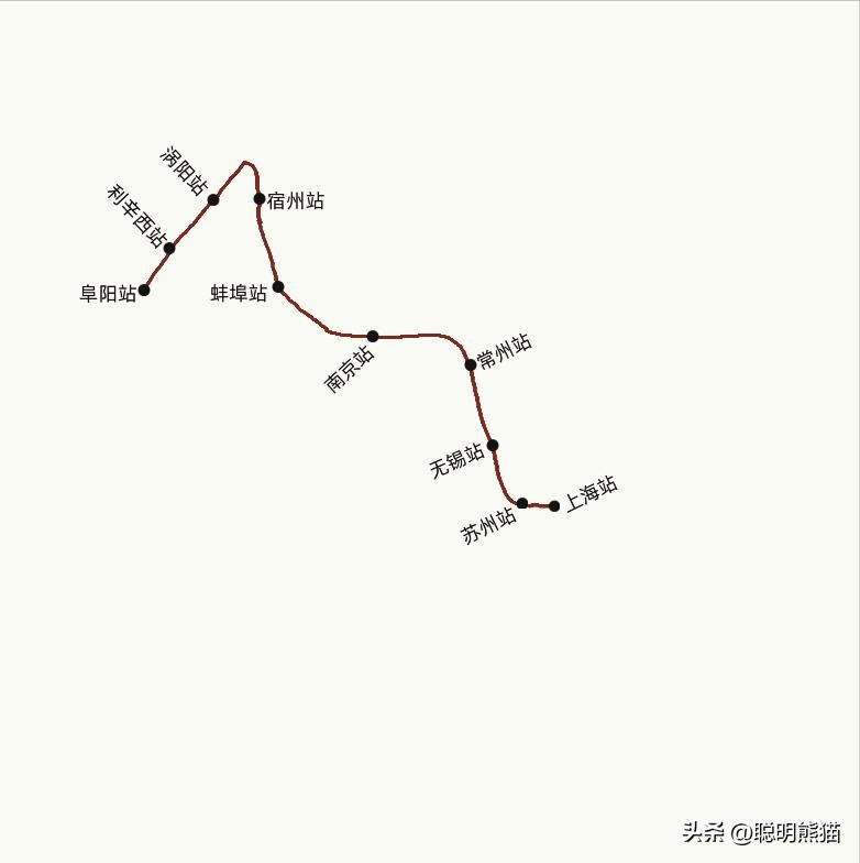 列车停靠阜阳站、利辛西站、涡阳站、宿州站、蚌埠站、南京站、常州站、无锡站、苏州站、上海站等十座车站