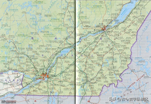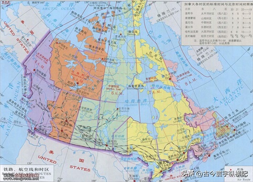 加拿大时区图、铁路线、航空线