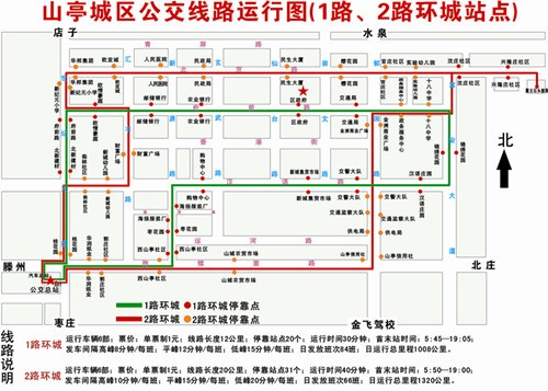 进、出市区线路:枣庄客运中心—德仁俊园—石岭路与北外环路口港湾站—抱犊崮。