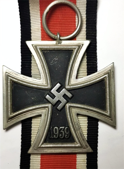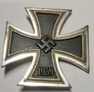 二战时期的一级铁十字勋章,外形和二级铁十字勋章基本一致,一级铁十字勋章比二级铁十字要大