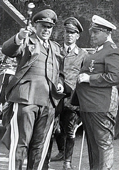 由左至右:握着元帅杖的凯塞林、其参谋长史佩尔和戈林