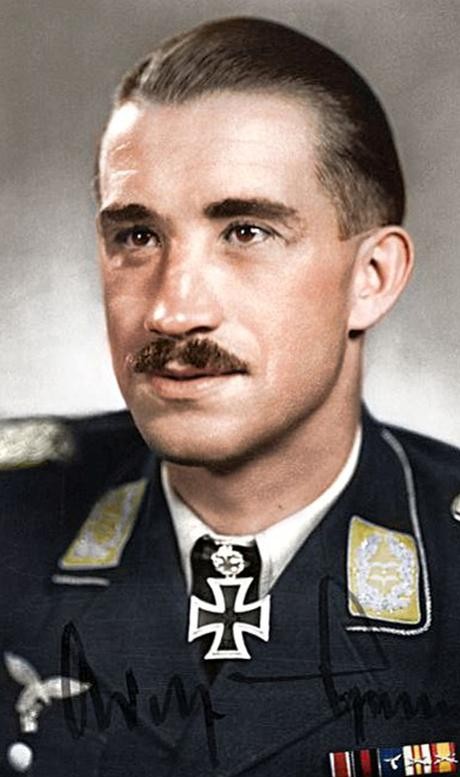 汉斯·鲁德尔:德国空军上校(第2俯冲轰炸机联队)。在整个的飞行生涯中,鲁德尔一共执行过2530次对地攻击的战斗任务(个人出动次数世界第一),通常是驾驶 容克87“斯图卡”俯冲轰炸机,在此期间他摧毁了接近2000个地面目标(包括519辆坦克(苏军2个坦克师装备的坦克),70艘舰艇和超过150个炮兵阵地,摧毁超过800辆各式车辆),还击沉了1艘战列舰,2艘巡洋舰,1艘驱逐舰,击落过13架飞机。