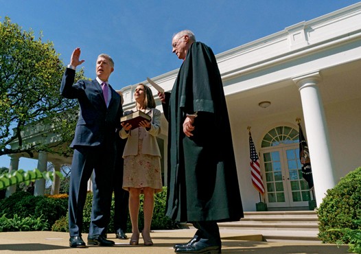 4月10日,在美国白宫玫瑰园,尼尔·戈萨奇(左一)宣誓就任美国历史上第101位最高法院大法官。图|CFP