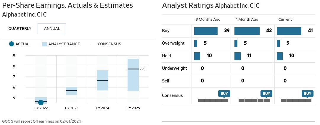 大多数分析师将 Google 股票评为买入或强力买入,理由是其在数字广告、云计算、人工智能等领域的领先地位。