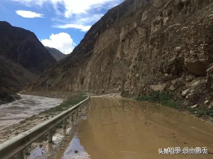 像上图这样山洪暴发把路给淹了的不要太多,不论是车还是人都得蹚水过去,在植被少的地方你最好祈祷不要下雨,有时候一场五分钟的小雨就能引发泥石流把路给堵了。