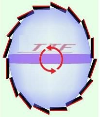 球旋转一周是360度,如果拍面每改变一度算作一种拍型,那么打出一种旋转球就可以有360种拍型!即使粗糙一些,每10度算作一种拍型,打出一种旋转球还可以有36种拍型。显然,这么多种拍形无论用文字还是图形来描述都是相当费力且难讨好的工作。从图2看,逆旋球绕着逆时针旋转。理论上说,绕着逆时针旋转方向的“赤道”任何一点切向摩擦都可以打出逆旋球(参见图2)。