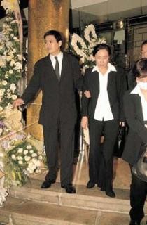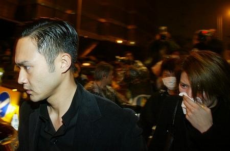 张国荣的挚爱唐鹤德,看着张国荣的遗像,悲痛欲绝,哭到全身无力,需要两个人搀扶