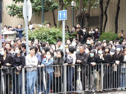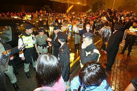 歌迷影迷将街道堵得水泄不通,香港警方不得不出动大批警力维持现场秩序。