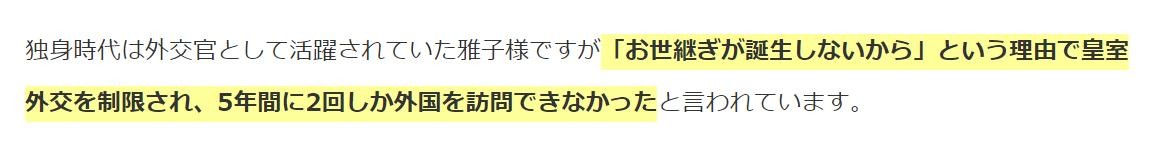 今天偶然间看到了一篇题为《雅子皇后不孕的原因?为什么不生育第二个小孩》的报道,才感觉到她是名副其实的“菊花王朝的囚徒”。