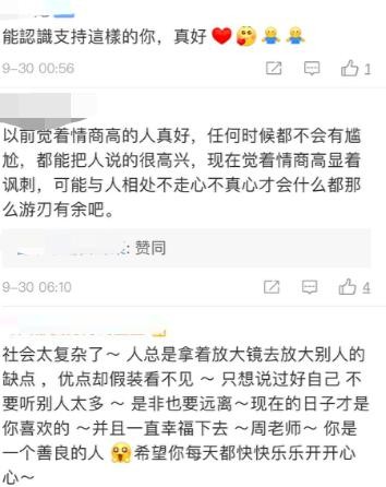 网友对周杰也是鼓励的态度,劝解他"情商高的人有时候会让人觉得交往过程中不走心,情商不高也许不会掩饰自己,但是没有什么错啊",网友还希望周杰能放下这些偏见,好好地过自己的生活就行。