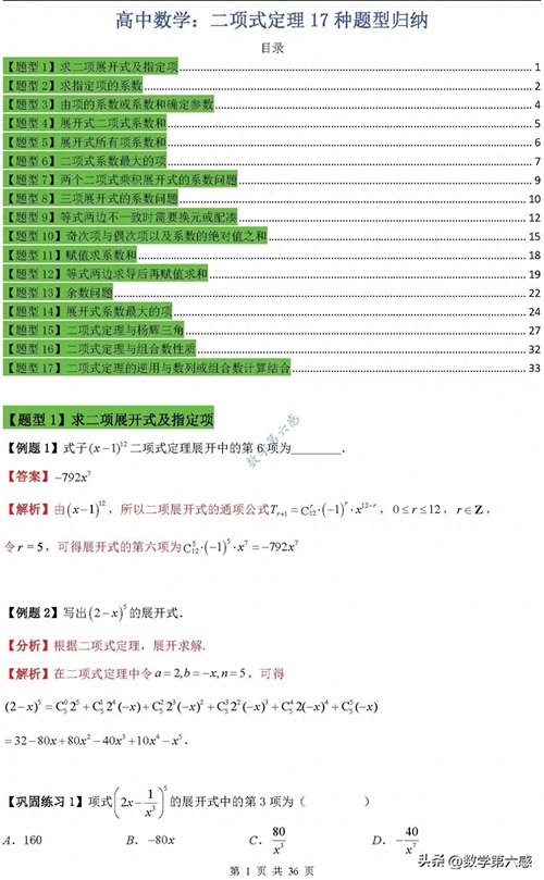 高中数学:二项式定理17种题型归纳(含word)