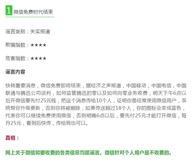 关于收费问题,“微信安全中心”早在2019年3月30日就曾辟谣:网上关于微信将要收费的各类信息均属谣言。微信针对个人用户是不收费的。