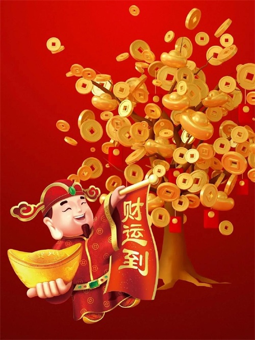 10、大年初五,财神到,迎进门,财运滚滚喜笑颜,多财多亿万事兴。