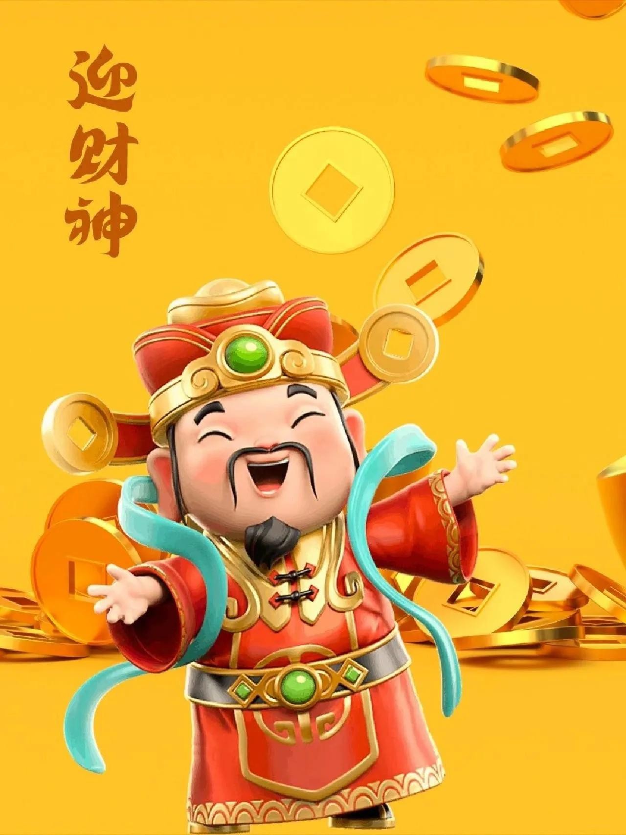 4、正月初五迎财神,大吉大利稳坐镇,投怀送抱金元宝,闪闪发光利是沉。