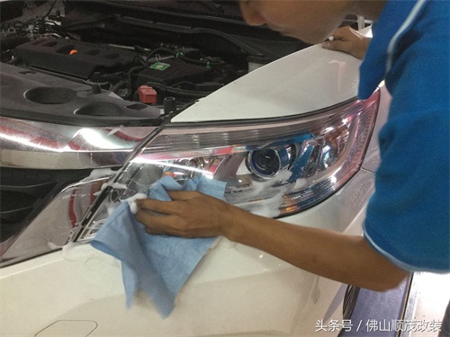 装车后清理大灯灯罩上的异物