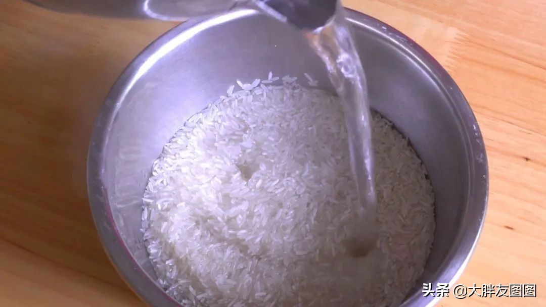 大米加个新煮开的热水进去泡1分钟,顺便把米给洗一下,倒掉淘米水之后就可以开始炒米了。