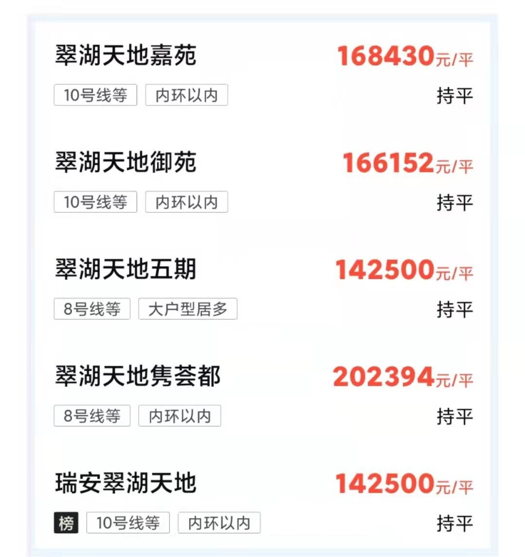 以及一线住宅汤臣一品和翠湖天地的价格,