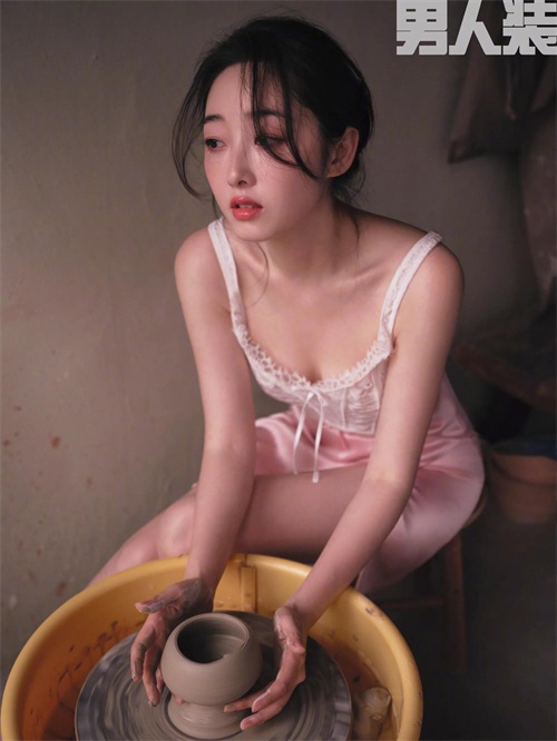 穿着如此性感的衣服制作陶艺,别有风味。