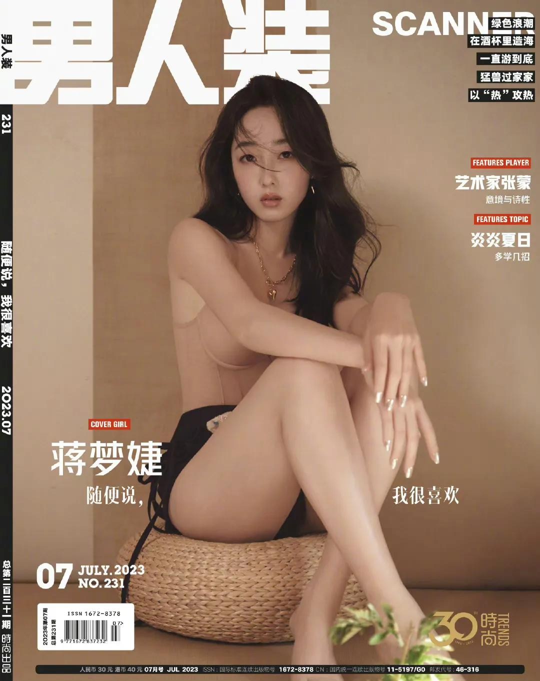 蒋梦婕《男人装》七月刊封面,穿裸色胸衣身材傲人,太辣了
