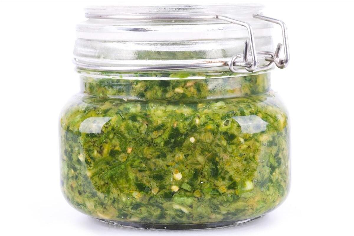 5、倒进去之后,我们将其充分搅拌,让食盐、高度白酒,均匀的裹在每一粒韭菜花上。接下来,准备一个罐子,务必要保证无水无油,然后将搅拌好的韭菜花,全部倒进去,盖子盖上,放入冰箱冷藏保存,15天后拿出来,就可以享用啦。