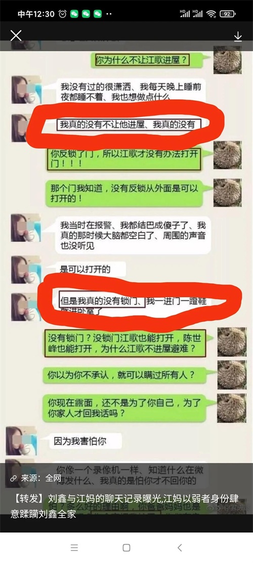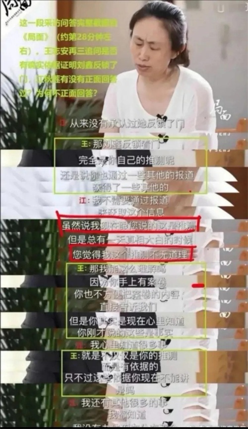 说到锁门,刘鑫说她没锁(图)江女士接受采访时明确说只是推测(图),而她在网上言之凿凿“刘鑫锁门害死江歌”(图)这个在此不评价了。