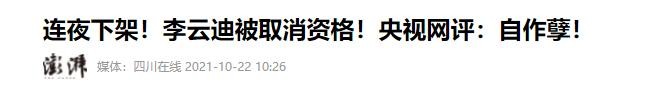 四川在线 2021-10-22关于:连夜下架!李云迪被取消资格!央视网评:自作孽!