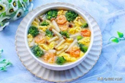 7、最后,在汤里放入西兰花,放盐进行调味就行