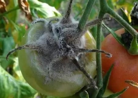 果实染病,初现水浸状斑,扩大后呈湿腐状,其表现密生白色棉絮状菌丝体,发病后期病部表面现数量不等的黑色鼠粪状菌核。