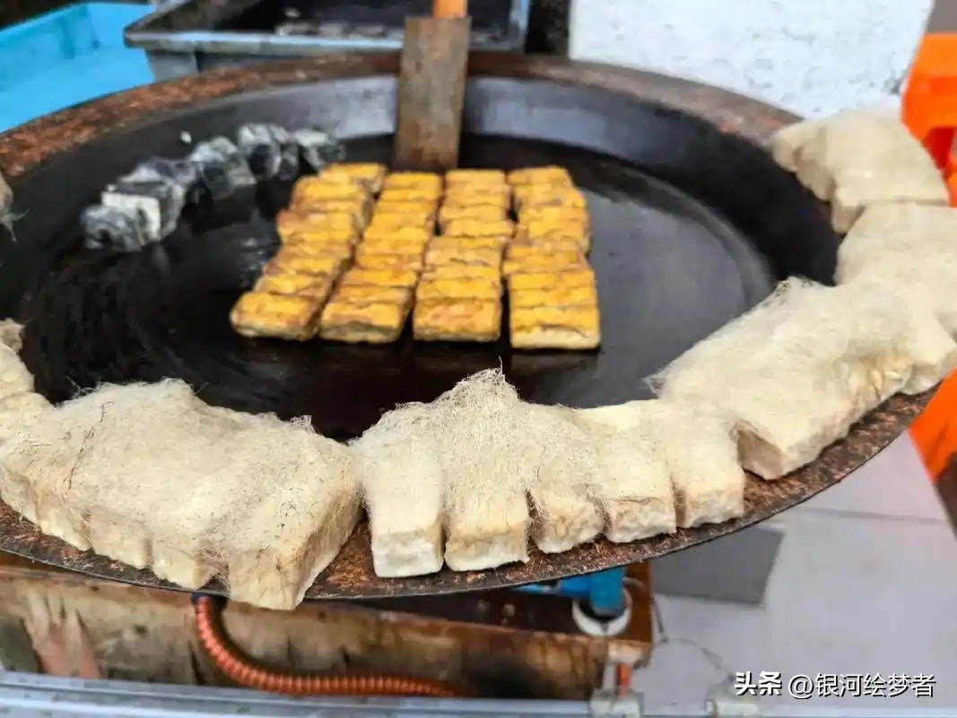 当老板将长满毛的豆腐放在锅里煎的时候,散发出来的味道也有点一言难尽,当咬一口品尝的时候,更是难以接受,味道很是奇怪。