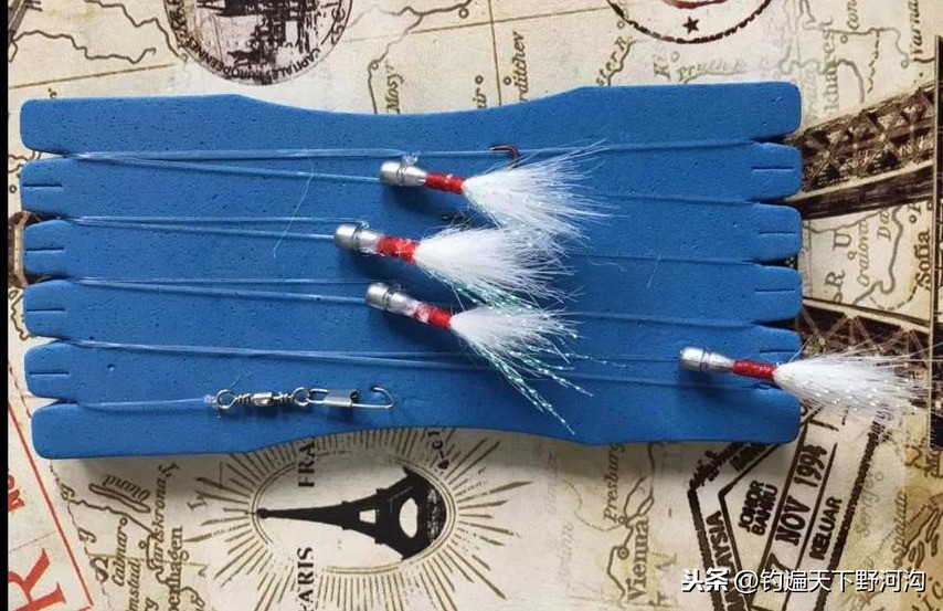 拖钓法这个词就能听出大概的意思,使用的钓竿为传统的手竿对鱼竿的要求比较高,一般选择10米左右的长度。鱼线使用2.0以内的通线,线的长度跟鱼竿一样长就好。鱼钩选择8号的朝天钩,鱼钩上绑上羊毛,跟串钩的绑制方法一样。这种钓法比较特殊跟大家介绍一下线组的制作方法吧。,首先绑制鱼钩的羊毛不能太长和太硬,太长和太硬都对翘嘴的适口性有一定的影响。需要注意的是绑好的鱼钩鱼线一定要在钩柄的内侧,鱼钩上的线预留15CM与子线连接。子线的长度选择在1.5米左右,原因是需要把三个或者四个羊毛钩串联每个钩距大概20CM左右。(与串钩的绑制方法一致)羊毛钩的使用原理说白了就是仿真(模仿水里的小鱼小虾)游动来引诱翘嘴的攻击,从而中鱼。使用方法跟路亚的手法几乎一致,靠的是中鱼的一刹那传递到竿稍的动力从而起竿。(大家有没有觉得羊毛很像小虾的胡须)由于这种钓法不需要打窝所以对它的出钓时间的把握很重要。结合我自己的经验我觉得夏天和初秋是钓它们最理想的时间段。我一般在夏天钓它都是早上三点多就起来钓了一直到八,九点结束,主要根据翘嘴的吃口情况而定。夜钓的话是从下午的五点左右到晚上的十二点左右是最佳时间。根据翘嘴的习性这种钓法白天垂钓效果不是那么好,还有就是夏天太热一定要避开高温点作钓。