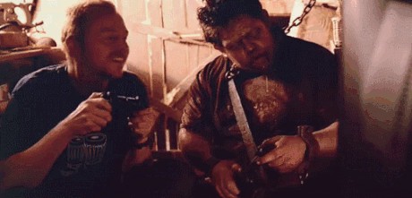 在荒岛上上演了一出荒诞版本的《荒野求生》。