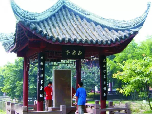 薛涛是唐朝有名的乐伎,与唐朝的大诗人元稹、自居易、裴度、刘禹锡、杜牧等都有往来唱和,曾被元稹赞誉被“锦江滑腻峨眉秀,幻出文君与薛涛”。她用自己的井水制出的纸在当时很负盛名,被称为“薛涛笺”。薛涛生前并不住在今天的望江公园,只是死后葬于成都东门外的锦江畔,望江公园内有她的土冢,高6米,周长10余米。到明代时,蜀献王朱椿为了纪念薛涛,就在今天的望江公园打井建作坊,仿制薛涛笺。由于井水经砂质地层过滤,甘甜清冽,所制出的纸号为上品。到了清康熙年间,在井旁刻了一通“薛涛井”的石碑,从此,人们就以为薛涛故里在今天的望江公园了。