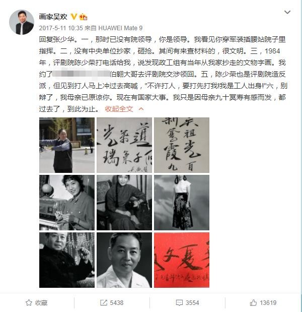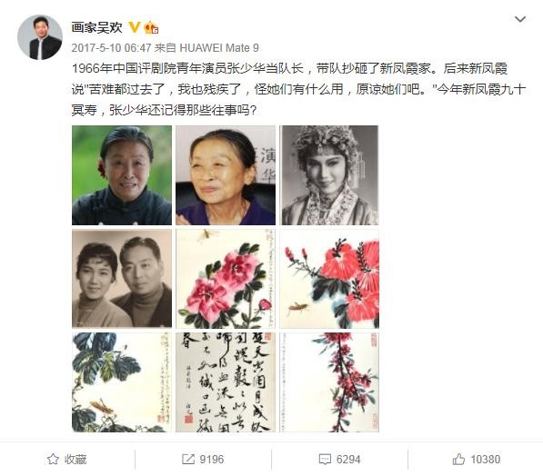 正当全网缅怀张少华的时候,画家吴欢突然发微博称,张少华与他母亲新凤霞的过往恩怨不必再提。
