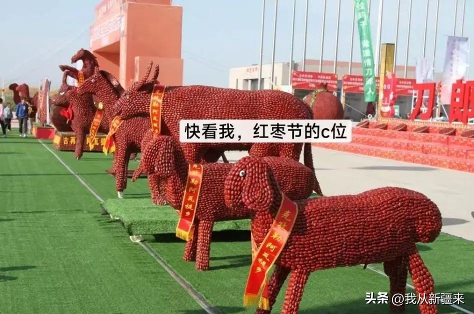 在麦盖提县红枣节的展示中,也不缺独属自己的一席之地——用红枣造的刀郎羊模型。