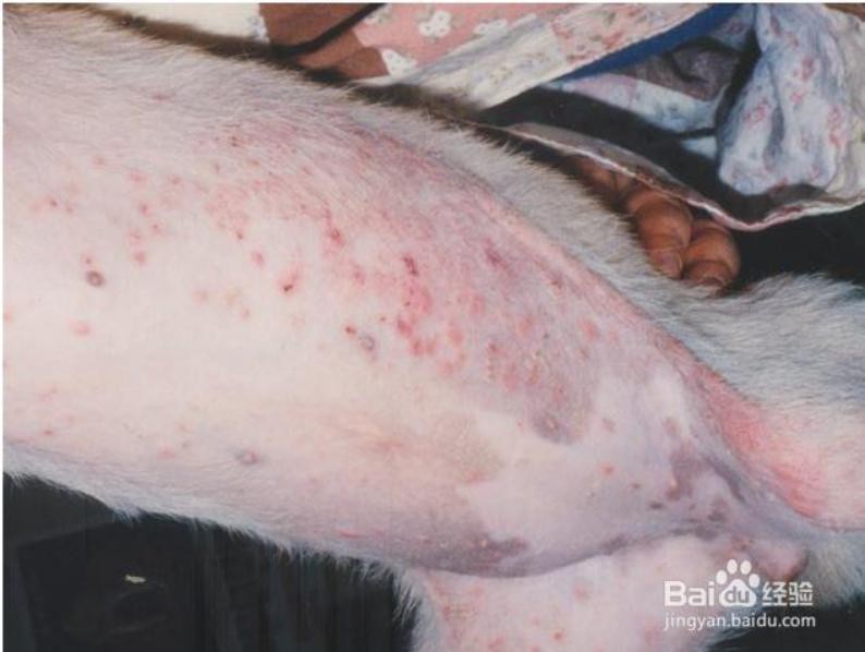 急性湿疹:病初患部呈点状或形状不同的红斑性湿疹。患犬可见有瘙痒感。随着病性的发展可出现丘疹期、水疱期、脓疱期、所不同。