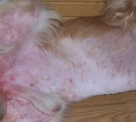 4.患部多见于背、耳廓、尾背、胸下、肘、关节等处,因瘙痒啃咬,患部扩大且病变加重。