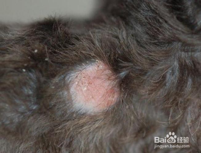 皮肤出现界限明显的脱毛圆斑、渗出和结痂等病变。