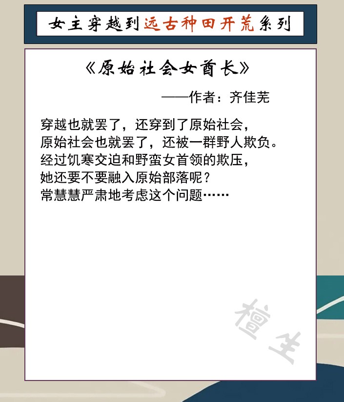 第一本:《原始社会女酋长》作者:齐佳芜