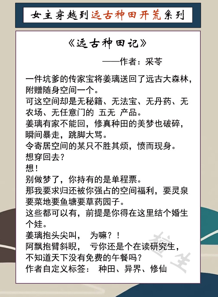 第二本:《远古种田记》作者:采苓
